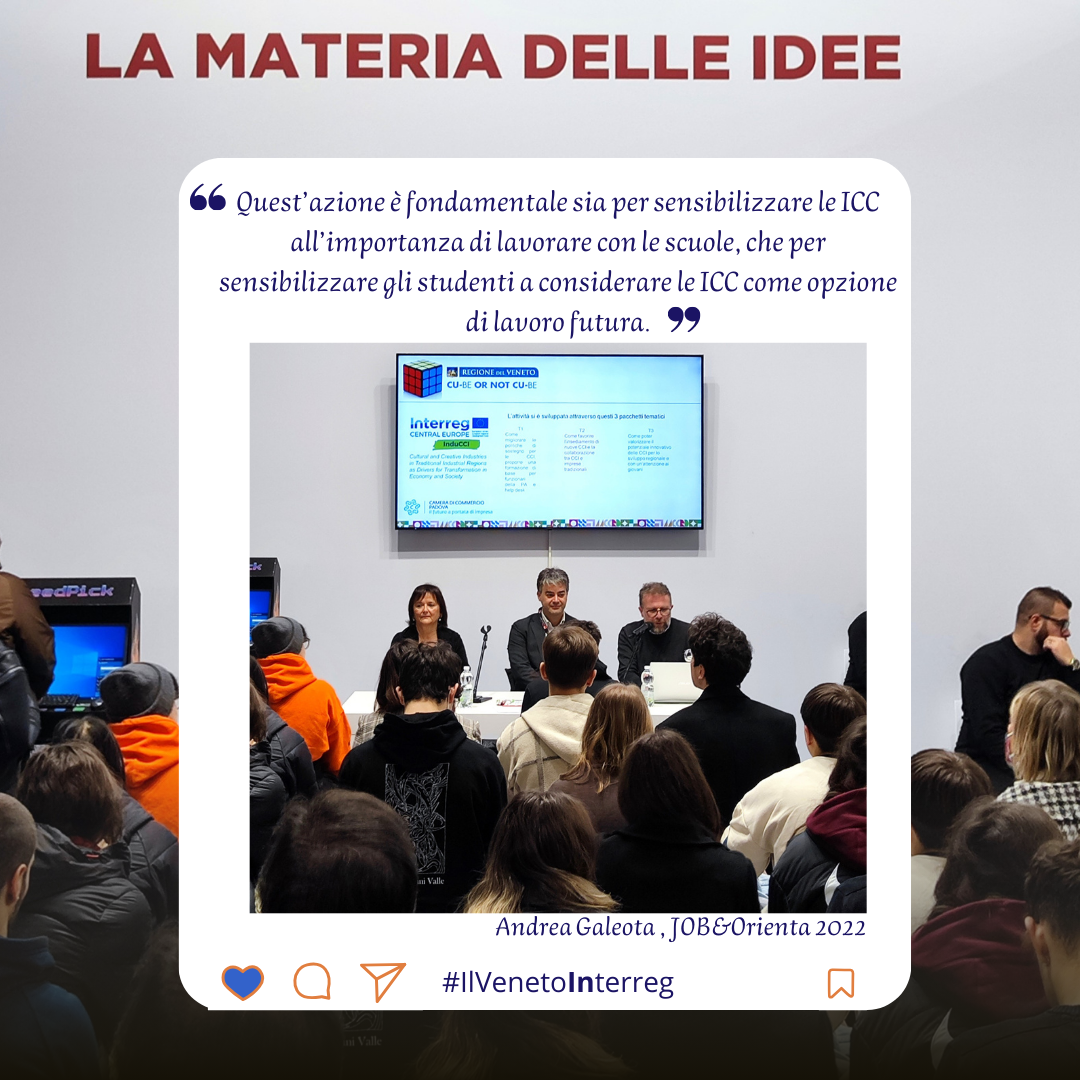 La CCIAA di Padova sottolinea come le industrie culturali e creative rappresentano una componente vitale della cultura industriale veneta. Questo settore è infatti riconosciuto come un elemento strategico all’interno della politica regionale di Strategia di Specializzazione Intelligente (S3). Grazie al progetto InduCCI, l’ente ha potuto proseguire nel rafforzamento di connessioni tra le imprese tradizionali e le CCI, costruendo sulle precedenti esperienze di Interreg CENTRAL EUROPE progetto InduCult2.0 e Interreg Alpine Space progetto DesAlps.